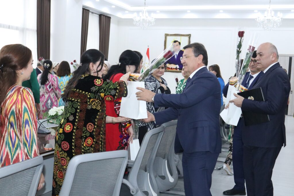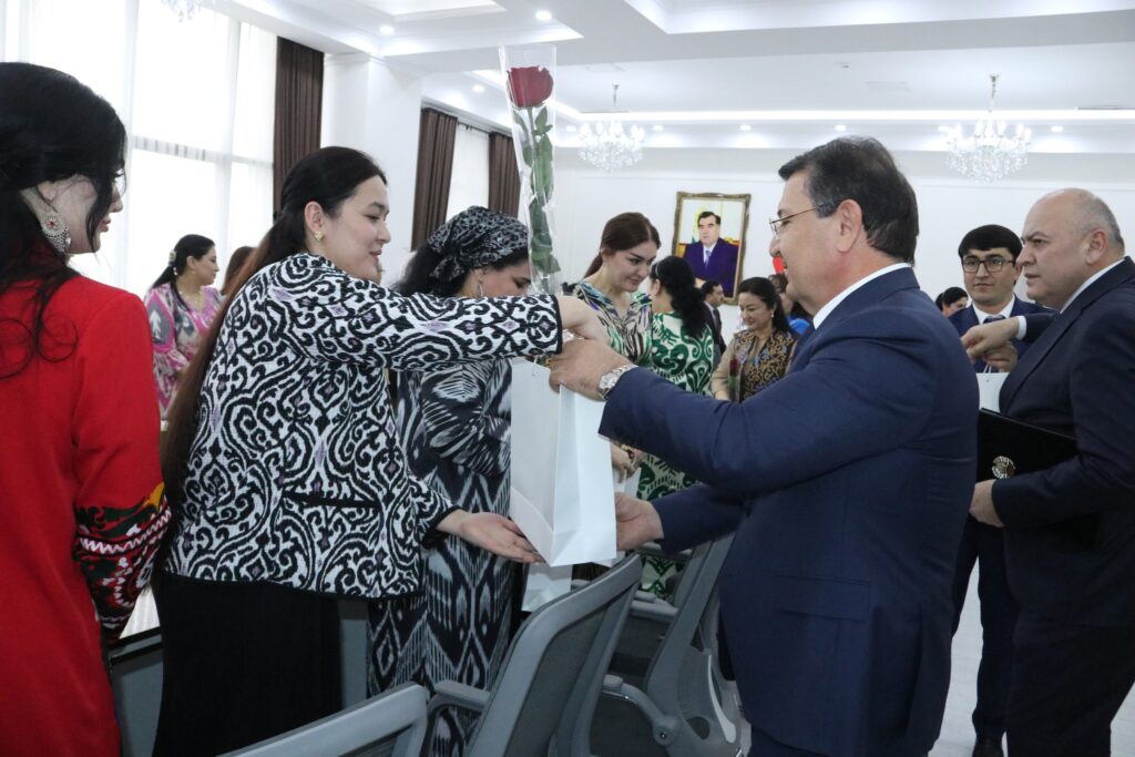 Дар идомаи чорабинии идона ба занону бонувон аз ҷониби роҳбарияти вазорат туҳфаҳои хотиравӣ тақдим карда шуд.